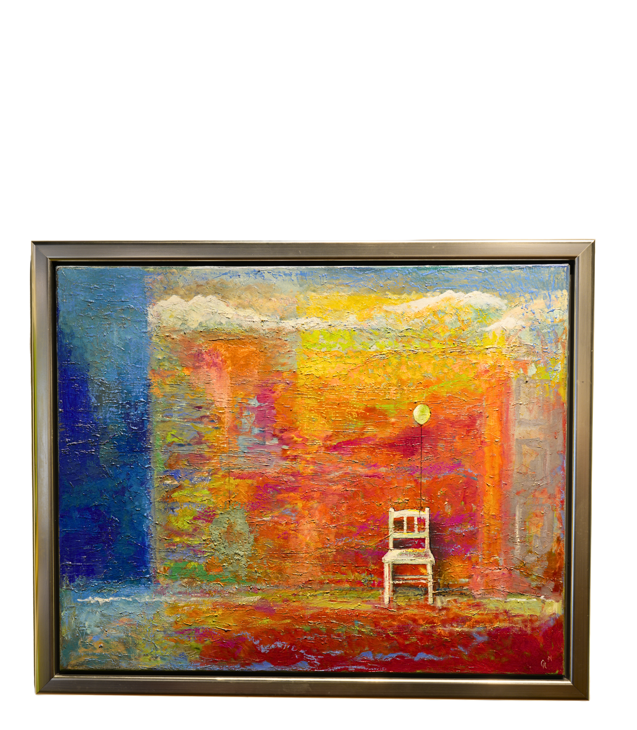 | Om værket | Grønland Olie på lærred Indrammet i svæveramme med revet sølv på toppen |